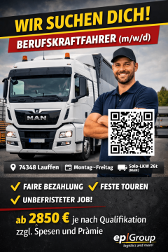 - Du arbeitest mit einem modernen Fuhrpark (MAN, VOLVO, Mercedes).