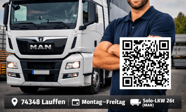 - Du bist mit einem modernen Solo-LKW (26t, MAN) unterwegs.