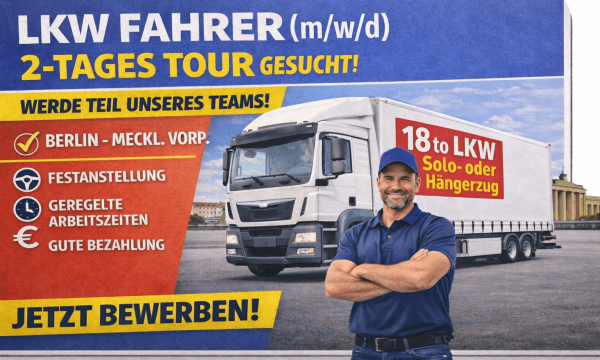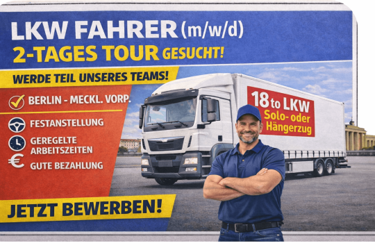 LKW Fahrer (m,w,d) für 2-Tages Tour ab 12109 Berlin